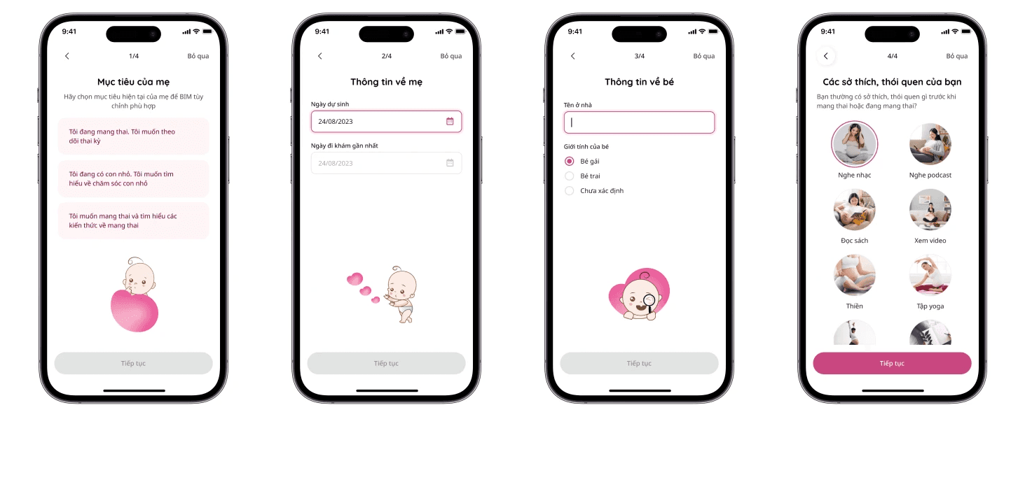 BIM is an application dedicated to pregnant mothers, supporting convenient and accurate pregnancy monitoring. With a daily prenatal education roadmap, this application provides knowledge to support fetal brain development from the womb. Fully integrating features for the journey of expecting a child, pregnancy, and postpartum, BIM provides a diverse, reliable, and scientific knowledge base to help mothers easily find information quickly and accurately.